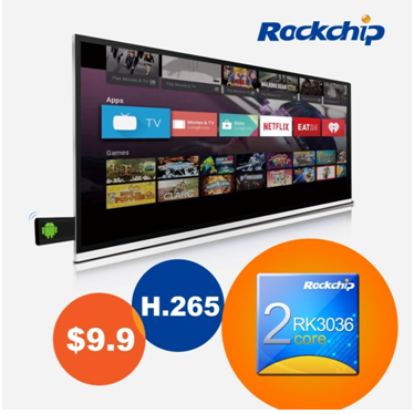 該方案采用RK3036芯片,支持H.265。產(chǎn)品通過(guò)直連電視設(shè)備,即可讓用戶獲得完整盒子體驗(yàn)效果。9.9美金的方案將極大推進(jìn)盒子全面普及進(jìn)程。