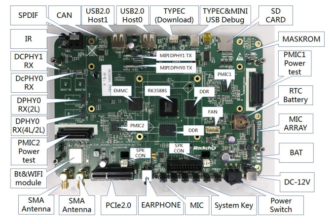 圖:RK3588S EVB 功能接口正面分布圖