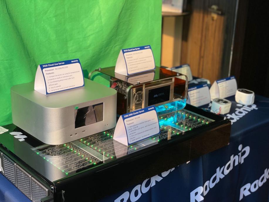 In the industry application exhibition area, Rockchip showed the edge computing equipment powered by RK3588, integrated 80 RK3588 chips, supported virtual 8 real phone numbers, and supported applications in cloud games, cloud mobile phones, cloud XR and other scenarios; it also showcased multi-screen live streaming devices that support simultaneous broadcasting on multiple platforms and various professional live streaming scenarios; in this area, Rockchip displayed a series of products covering industry, electric power, education, medical care, finance and retail devices. There are large quantities of categories in this exhibition area, including power concentrators, industrial tablet, medical tablet, bank desktop, edge computing server, etc.
